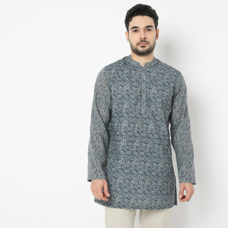 This printed pattern kurta has a mandarin collar and full sleeve. Made from cotton polyester, it is soft and comfortable to wear.