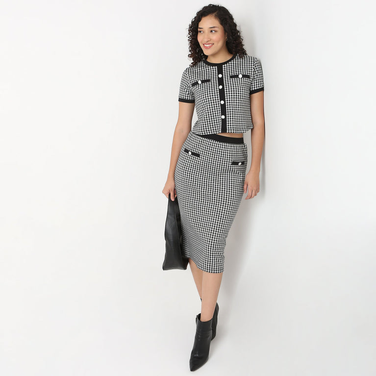 These checkered pattern regular fit skirts has above knee length, high rise waist. Made from cotton, it is soft and comfortable to wear.