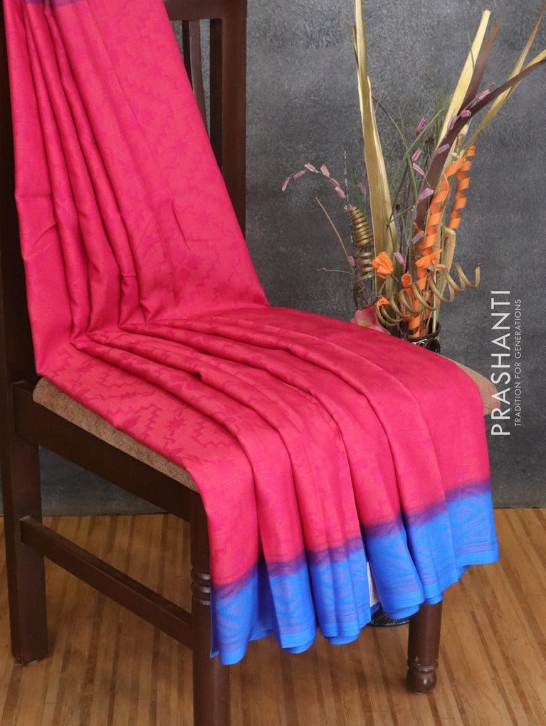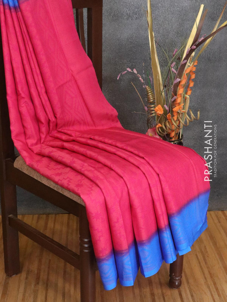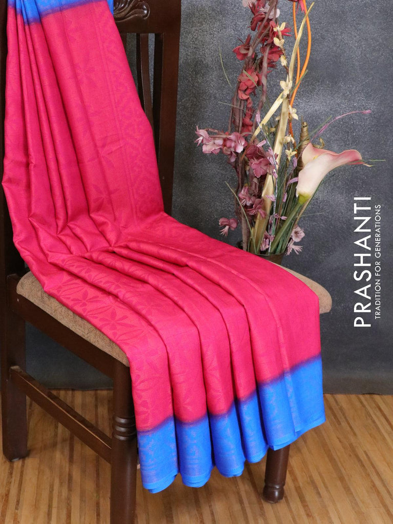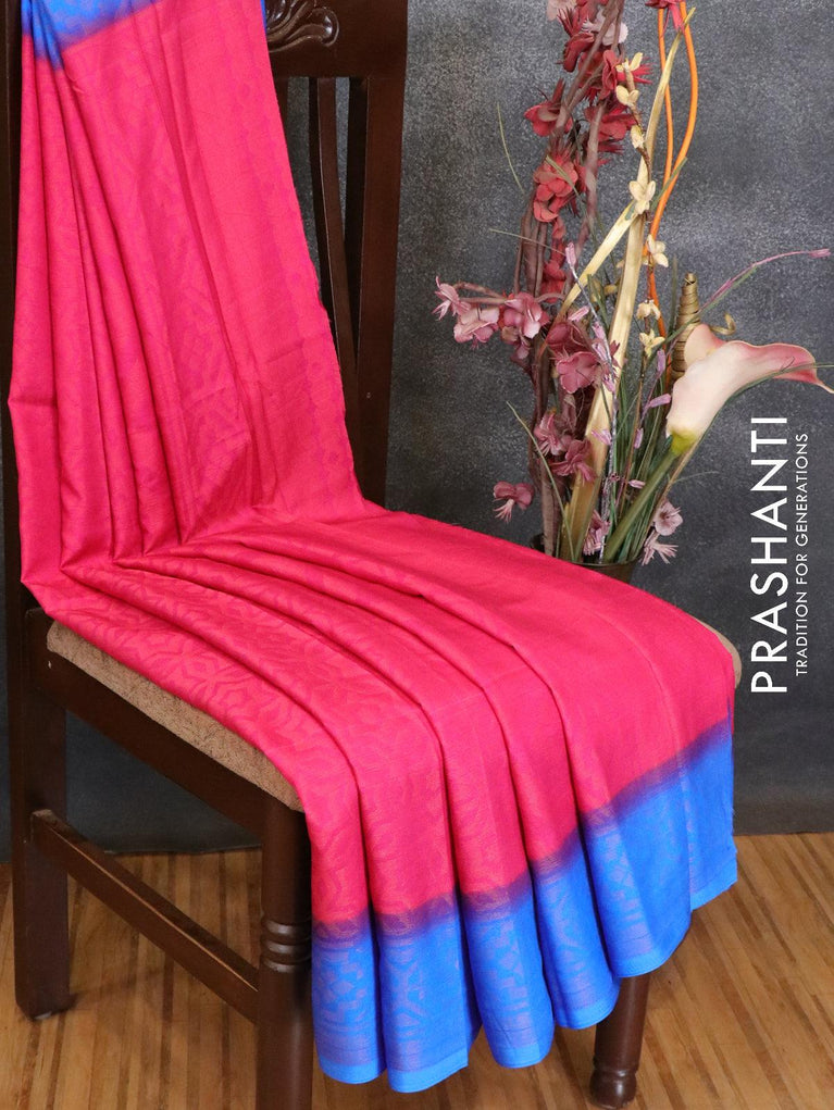 Brasso saree pink and blue with allover weaves