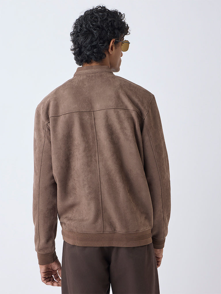 A weekend classic in the making, this brown suede jacket from Ascot pairs a relaxed handle with the richness of luxe suede. The ribbed stand collar adds a subtle sport-inspired edge, while the zipper placket and full sleeves keep the look crisp. Side pockets complete the piece with everyday practicality.