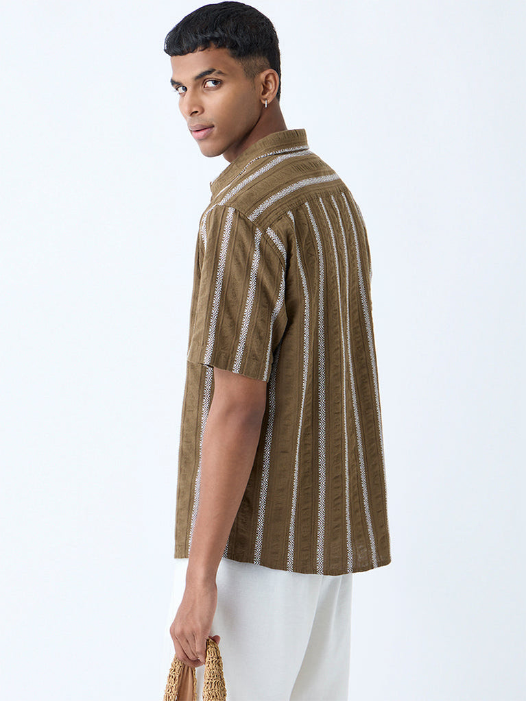 ETA Brown Striped Relaxed-Fit Cotton Shirt