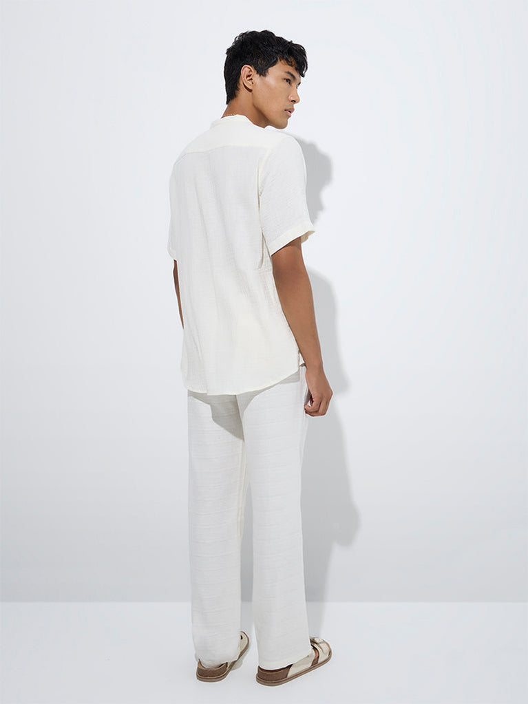 Channel relaxed resort energy with these off-white textured pants from ETA. Made from a soft cotton-blend fabric, they offer a breathable, relaxed fit that moves with ease. The elastic waistband and adjustable drawcords ensure comfort through long flights or lazy afternoons.