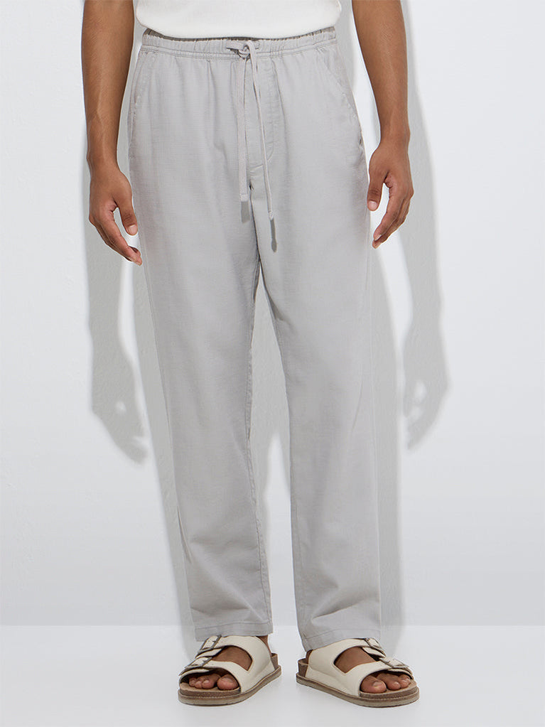 ETA Grey Solid Relaxed-Fit Mid-Rise Cotton Chinos