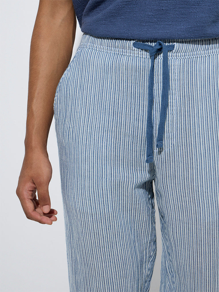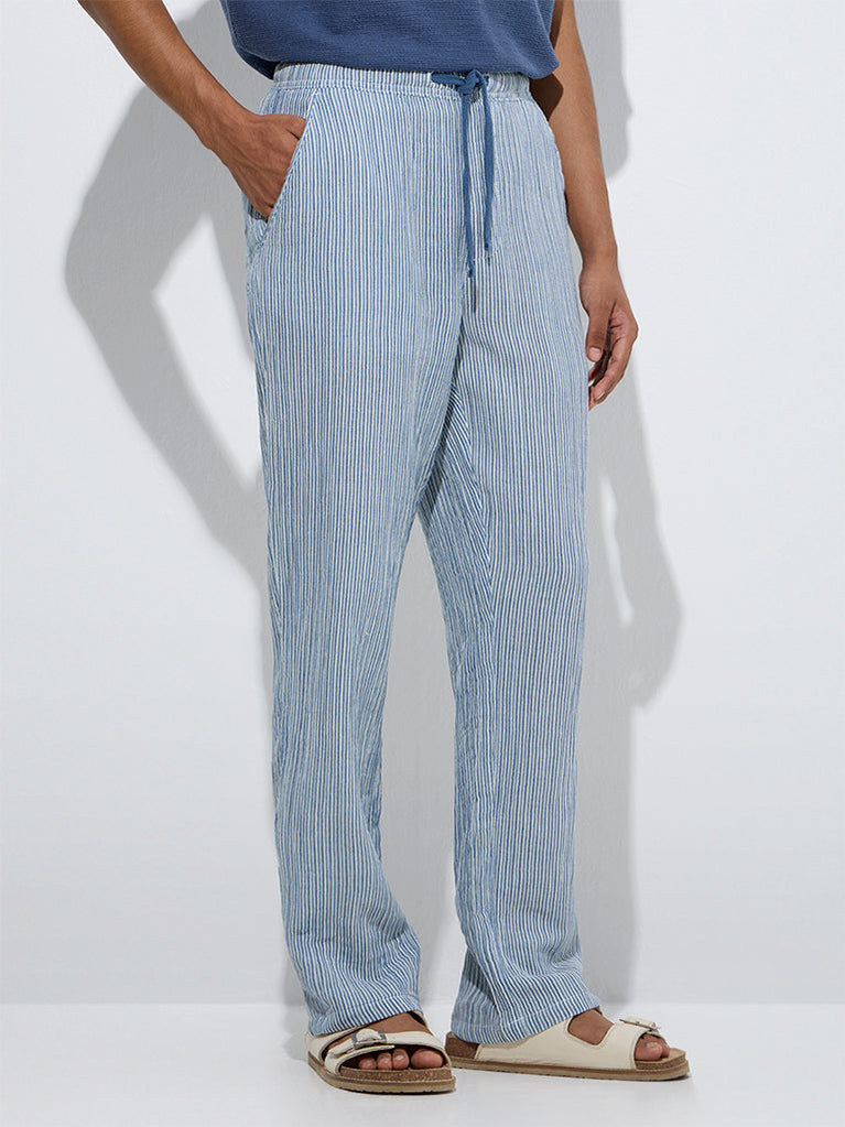 ETA Indigo Stripe Printed Mid-Rise Relaxed-Fit Cotton Chinos