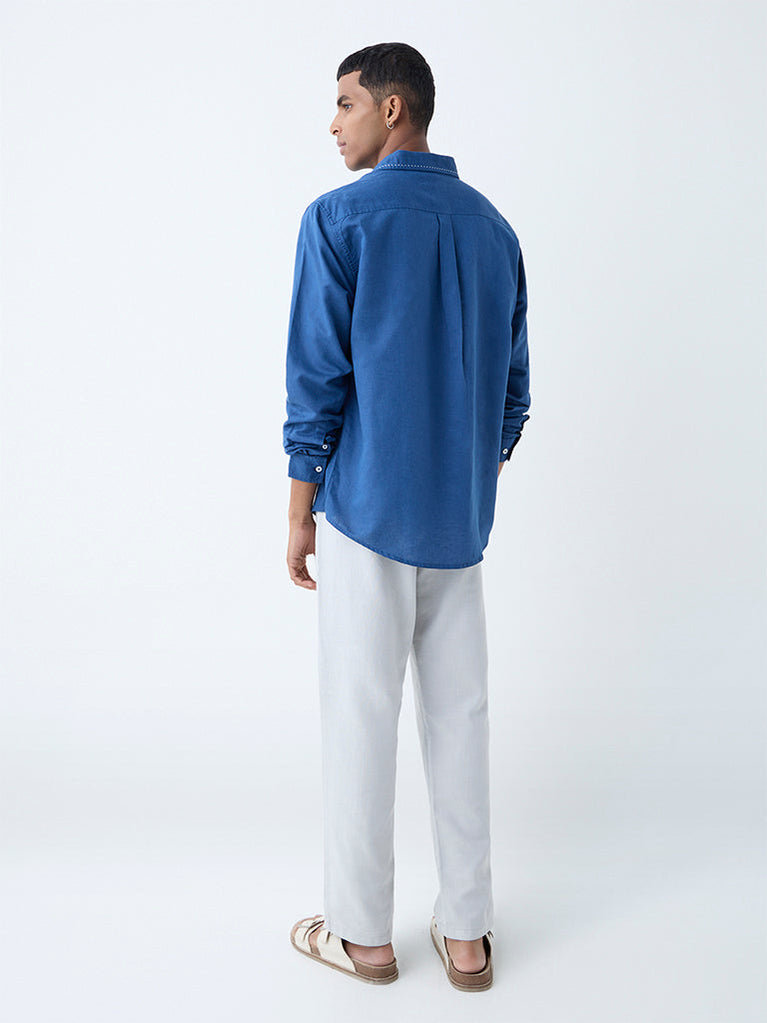ETA Indigo Textured Relaxed-Fit Mid-Rise Cotton Trousers