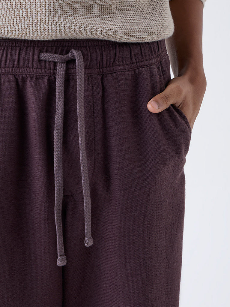 ETA Dark Purple Solid Relaxed Fit Mid-Rise Cotton Chinos