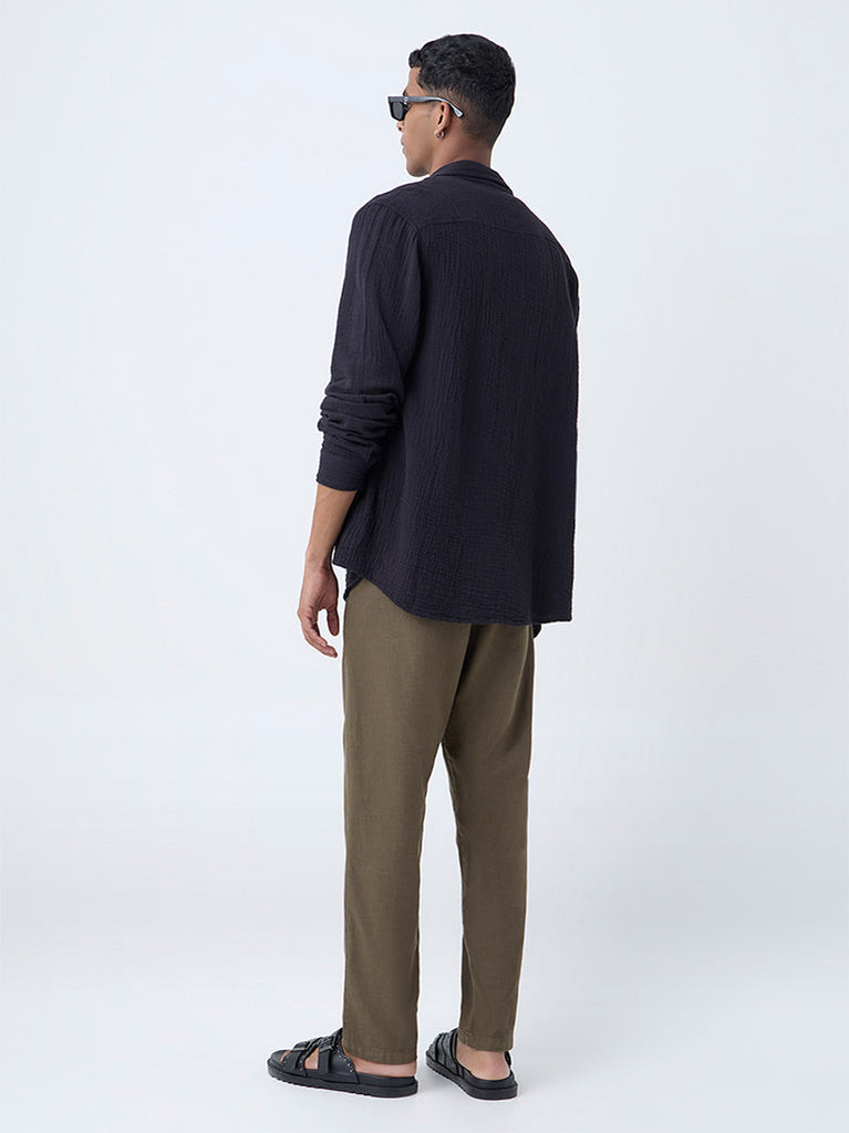 ETA Dark Taupe Solid Relaxed-Fit Mid-Rise Cotton Pants