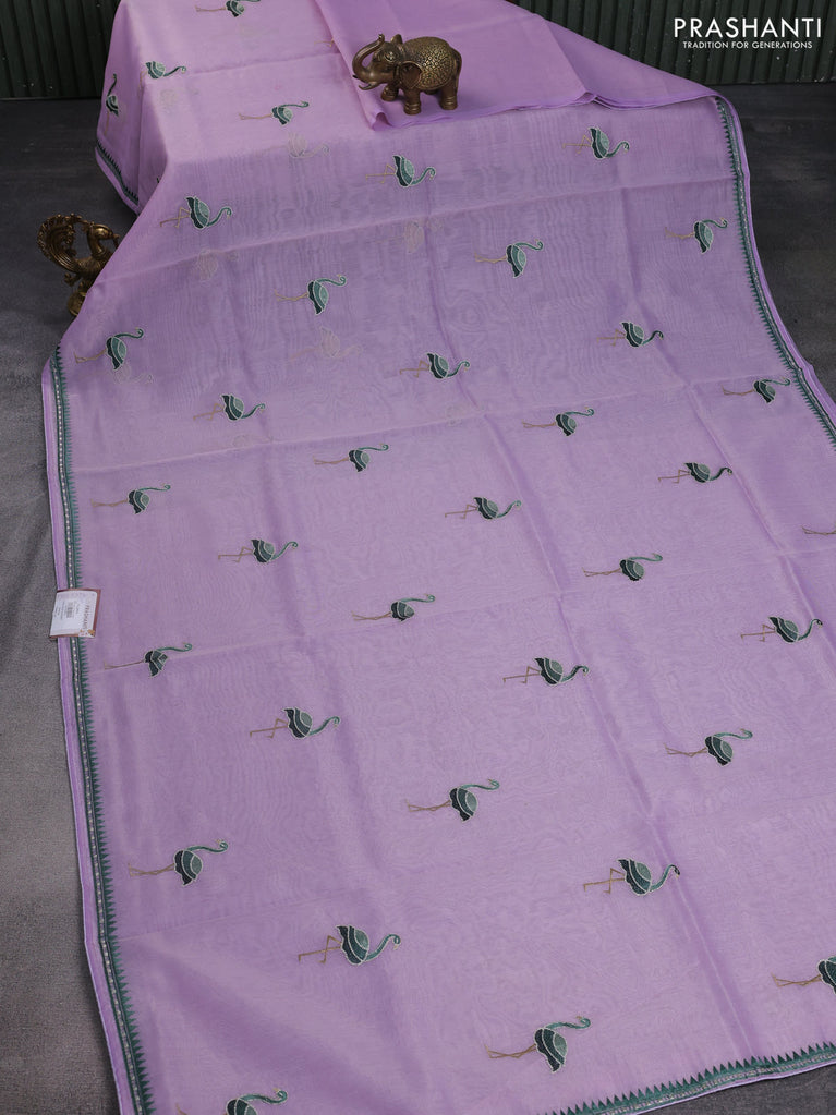 Chanderi tissue saree lavender with embroidery buttas and simple temple design border