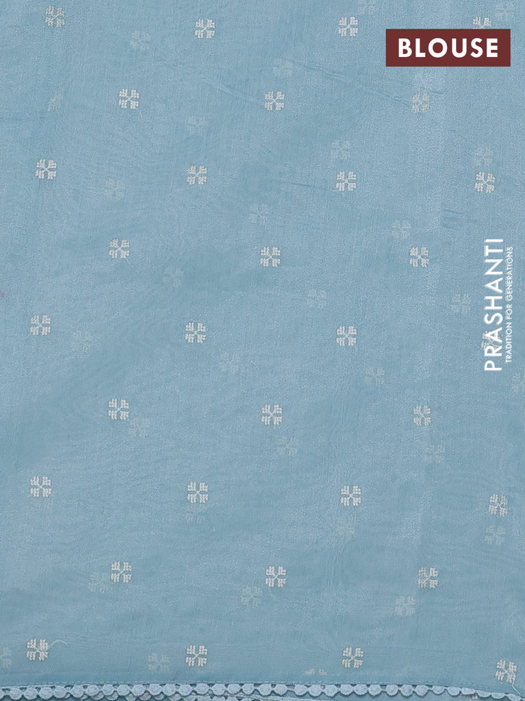 Chanderi tissue saree teal blue with allover embroidery and lace work border