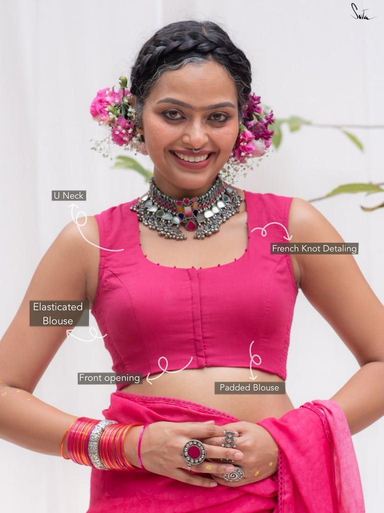Note: Our blouse comes with an extra margin, allowing you to easily size up for a perfect fit.
