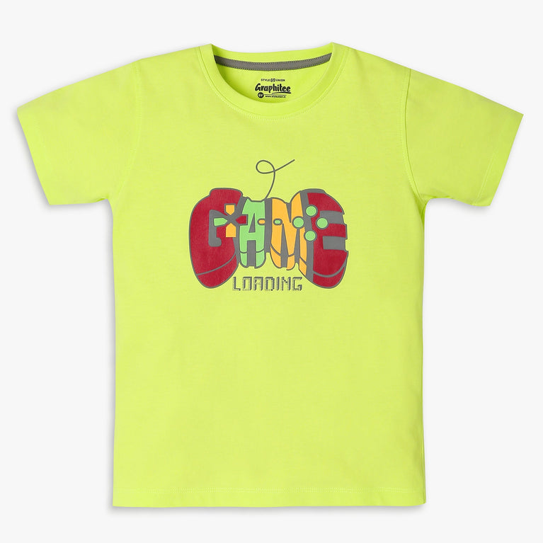 These graphic t shirt theme, graphic pattern t-shirt has crew neck and half sleeve. Made from cotton, your kid's feel comfortable wearing the product.