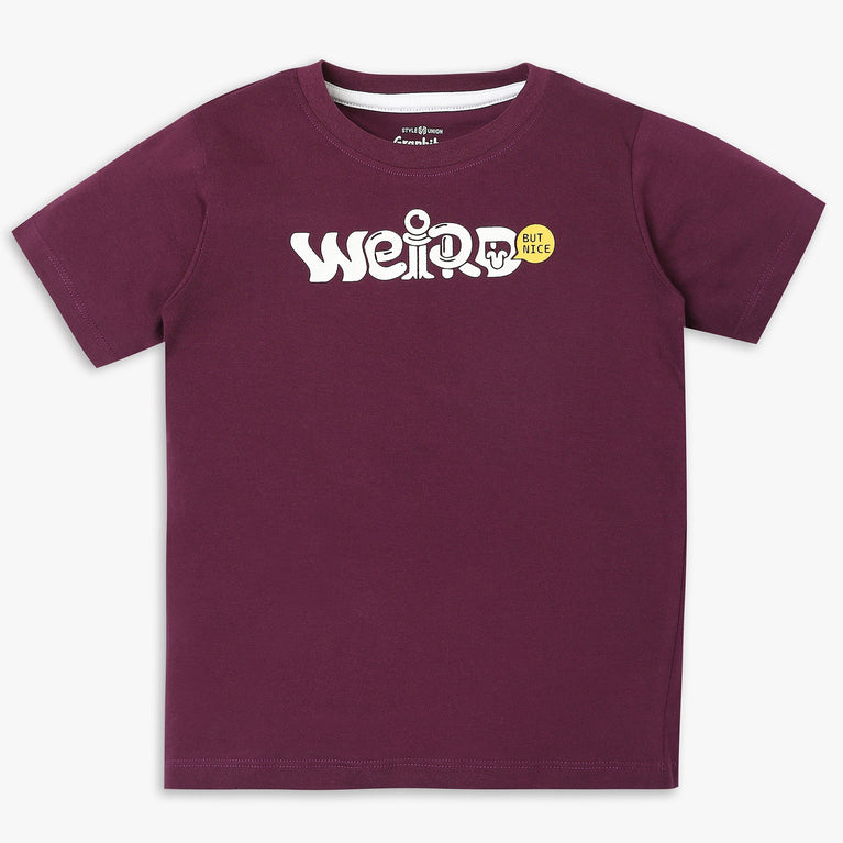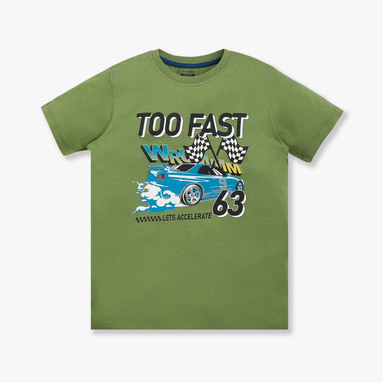 These graphic pattern t-shirt has crew neck and half sleeve. Made from cotton, your kid's feel comfortable wearing the product.