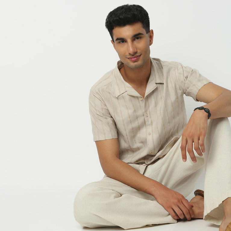 Camp Collar Half Sleeve Striped Structured Solid Bae Shirt