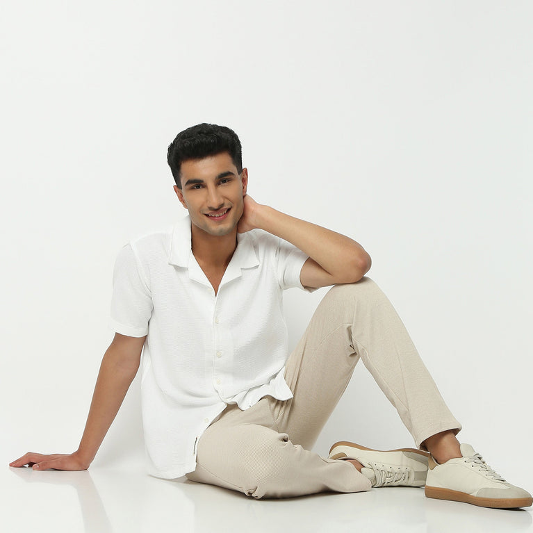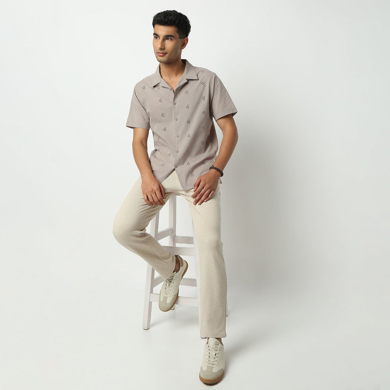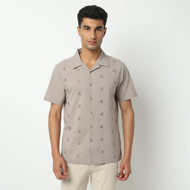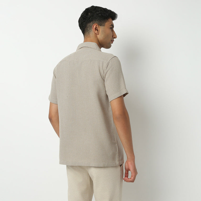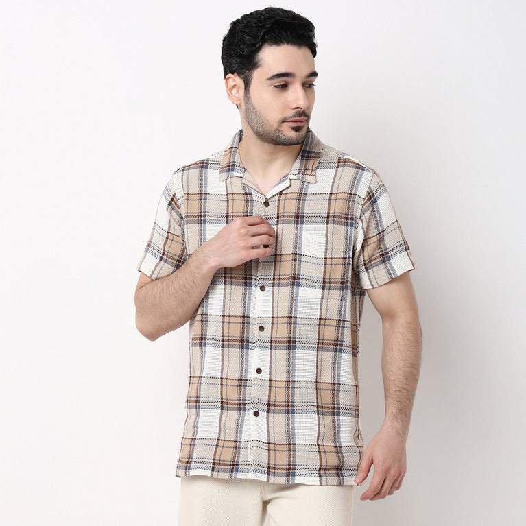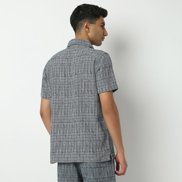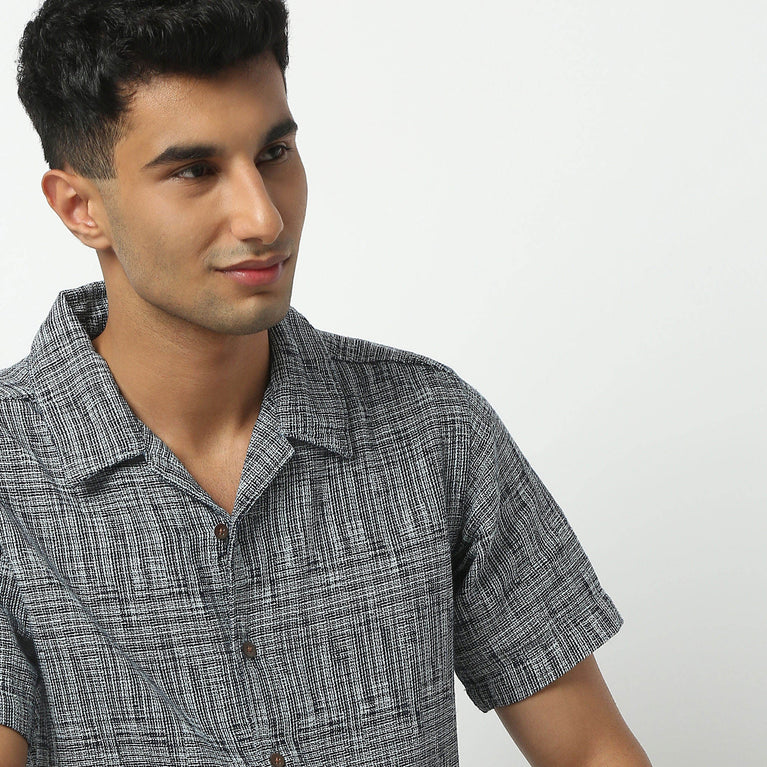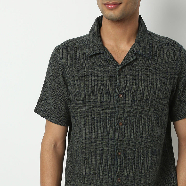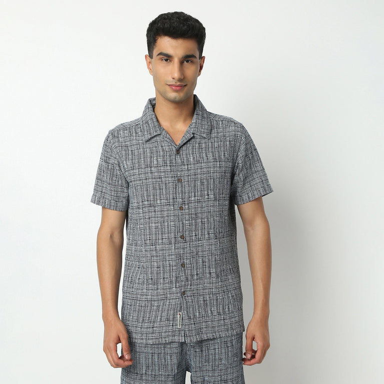 Camp Collar Half Sleeve Yarn Dyed Textured Mood Shirt