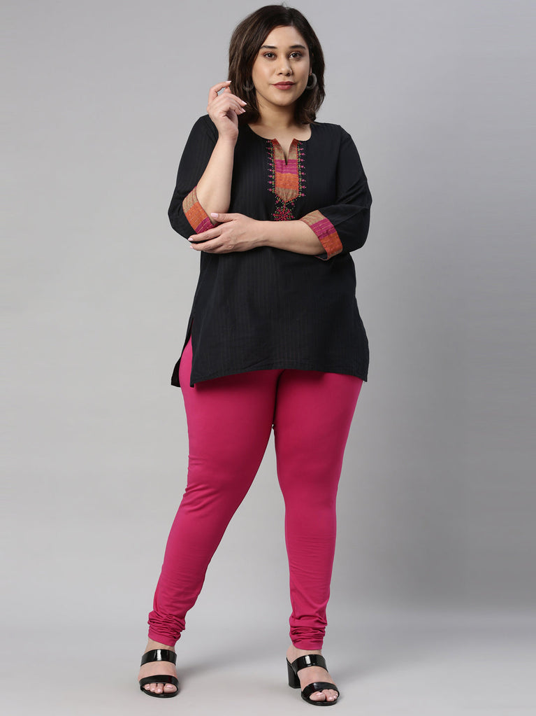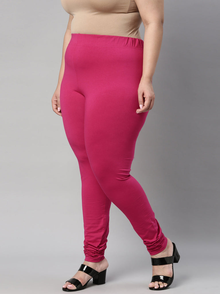 Go chic with a pair of Dark Pink Solid Churidar Leggings. Made from high quality cotton, it has a elasticised waistband & gathers at the hemline.