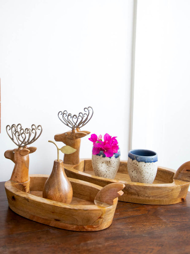 Set of 2 - Jwala Wooden Base Cutwork Metal Candle Stand