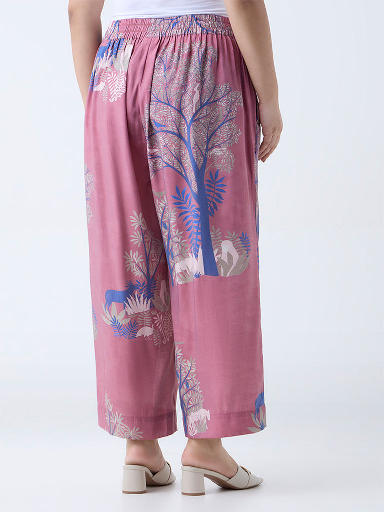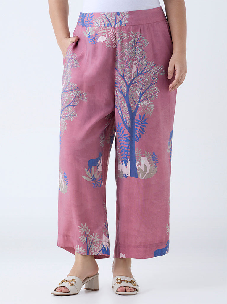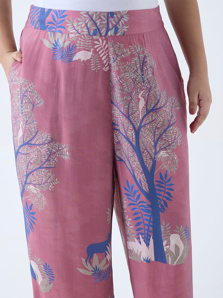Diza Dusty Pink Forest-Themed Ethnic Pants