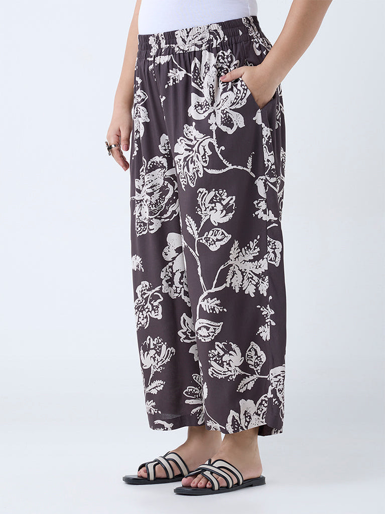 Diza Dark Brown Floral Detailed Ethnic Pants