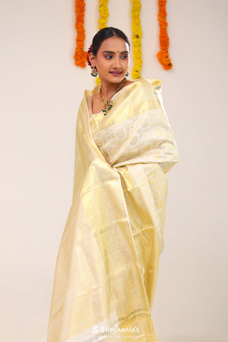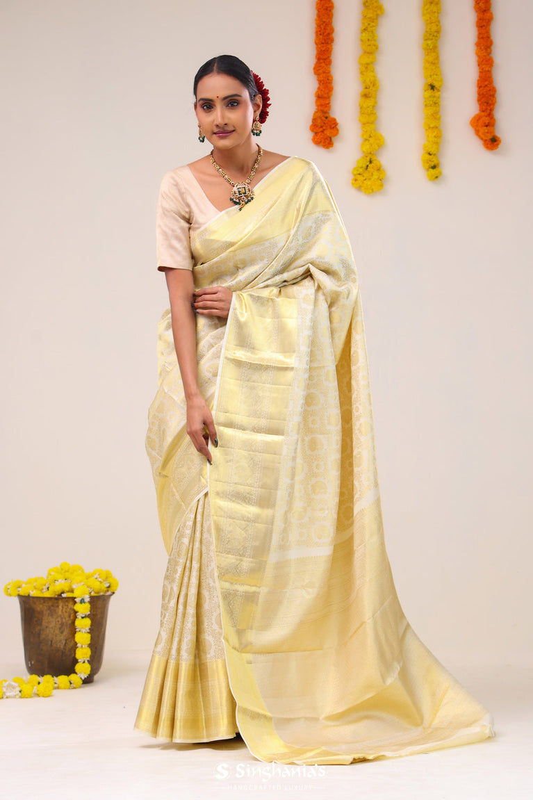 Hansa Yellow Tissue Kanjivaram Saree With Geometrical Weaving