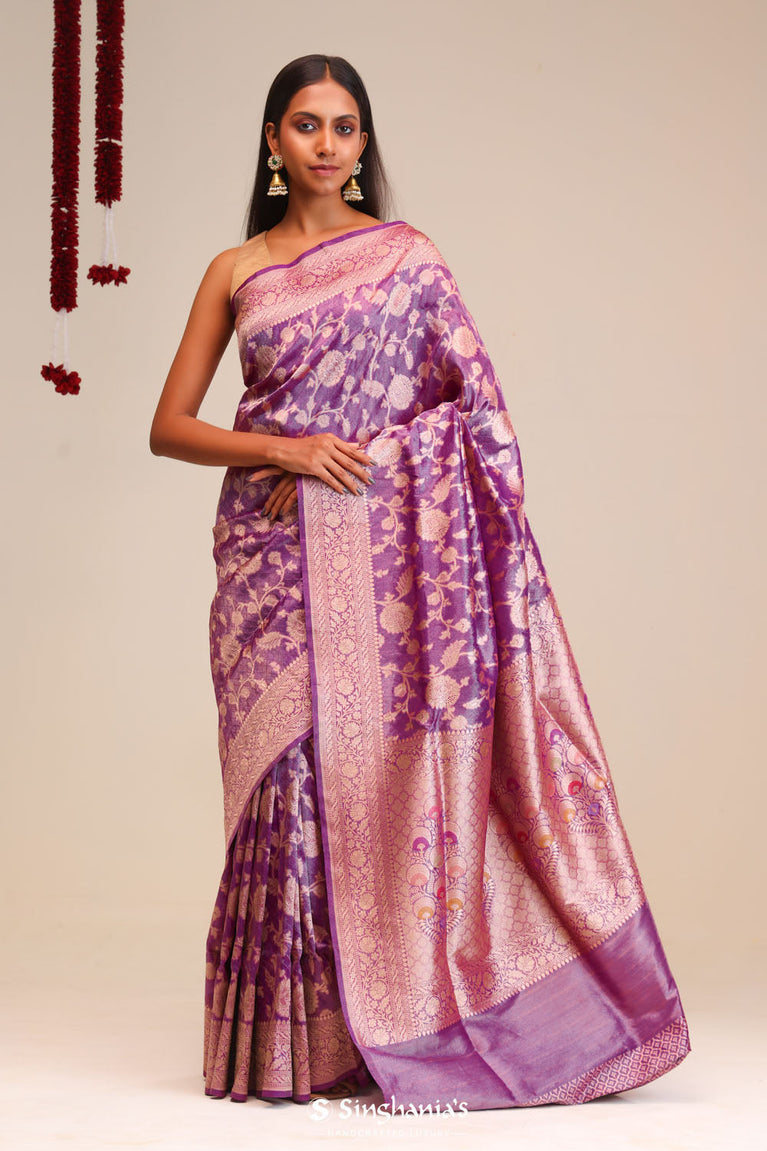 Jangla Tissue Banarasi Saree In Traditional Purple