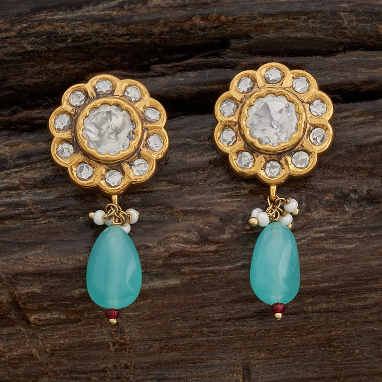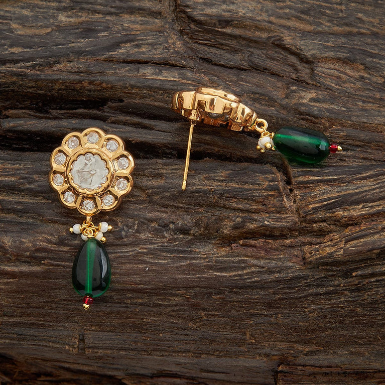 Kushal's Fashion Jewellery Flower Motif Kundan EarringKundan earrings are one of the best accessories to wear with a traditional outfit, and with matching accessories, you can also wear them with fancy outfits. Keeping this in mind, we present our latest pair of Kundan earrings for your accessory collection. All you have to do is wear them with your favorite outfit to be the trendsetter.