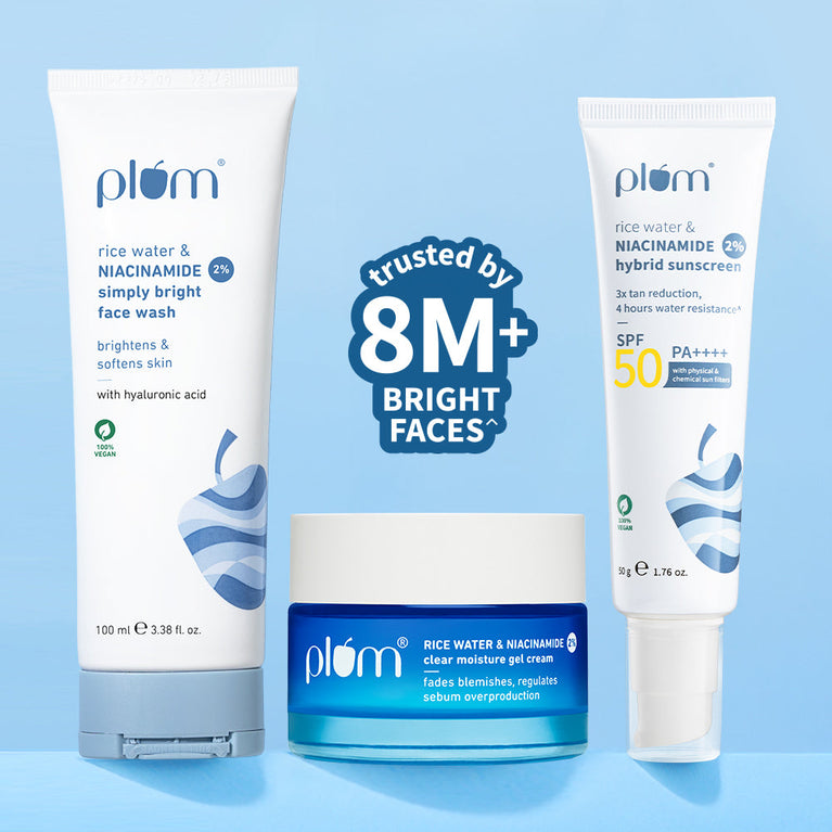 Powered by Niacinamide and Rice Water, this 3-step routine, featuring a face wash, serum, and SPF50 sunscreen gently lifts away impurities, refines pores, hydrates deeply, and shields skin from sun damage. The result? Brighter, smoother, and more even-toned skin. Because clear skin is always a bright idea.