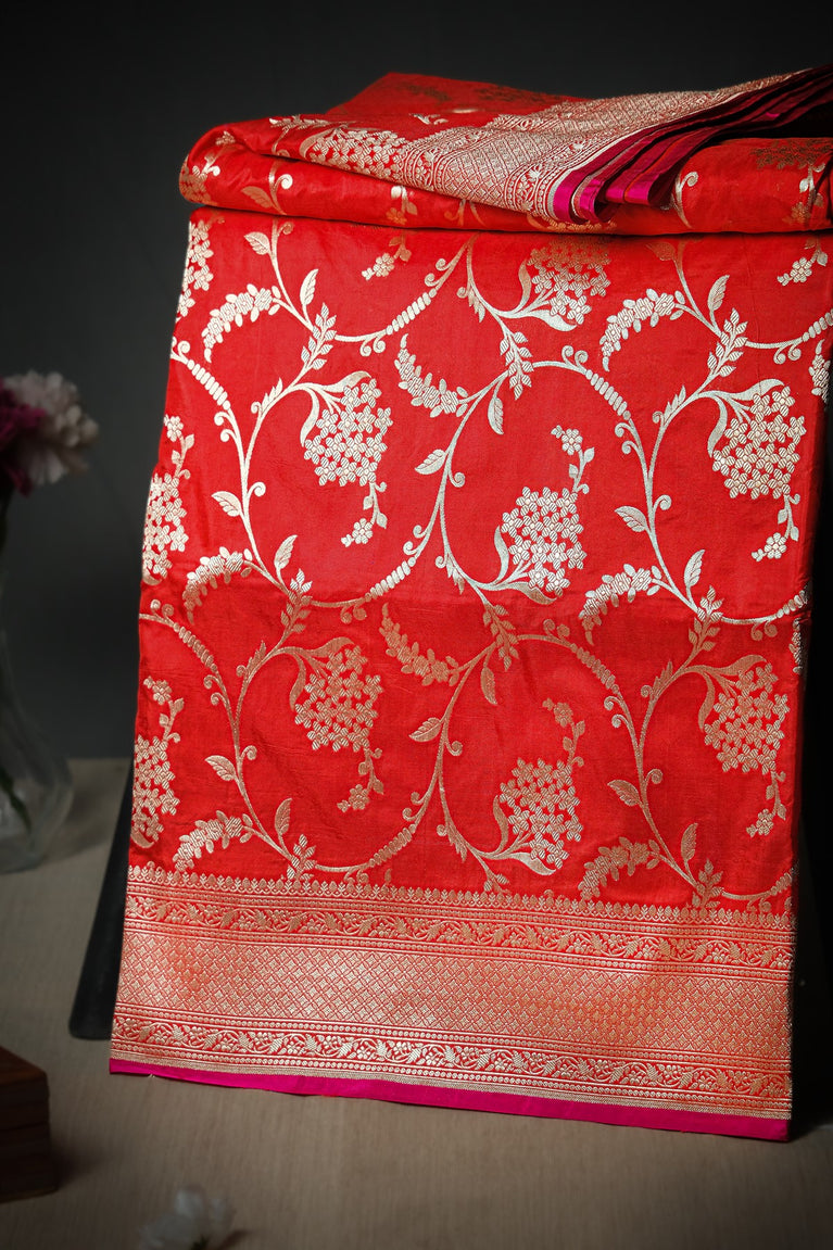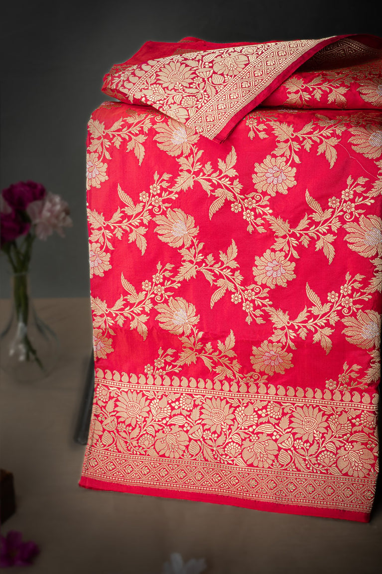 Mandir Red & Gold Banarasi Floral Jaal Saree