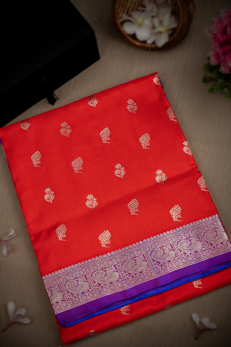 Mandir Red & Royal Blue Venkatagiri Buttis Saree