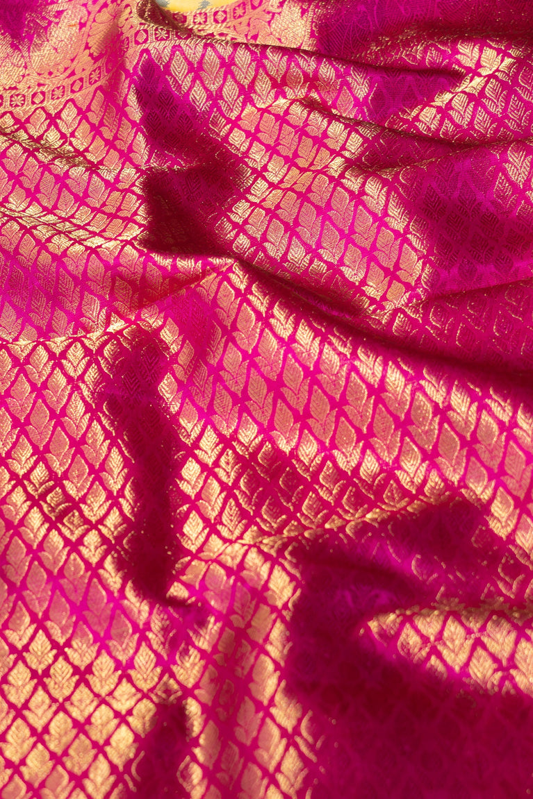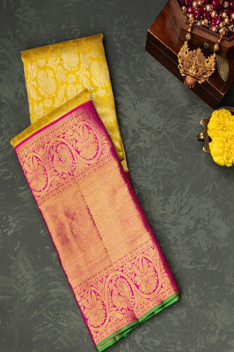 Mandir Yellow & Pink Kanchipuram Jaal Saree