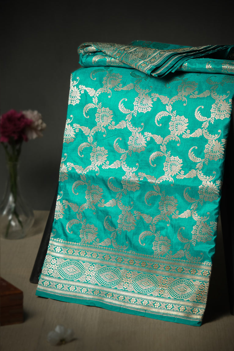 Mandir Teal & Gold Banarasi Jaal Saree