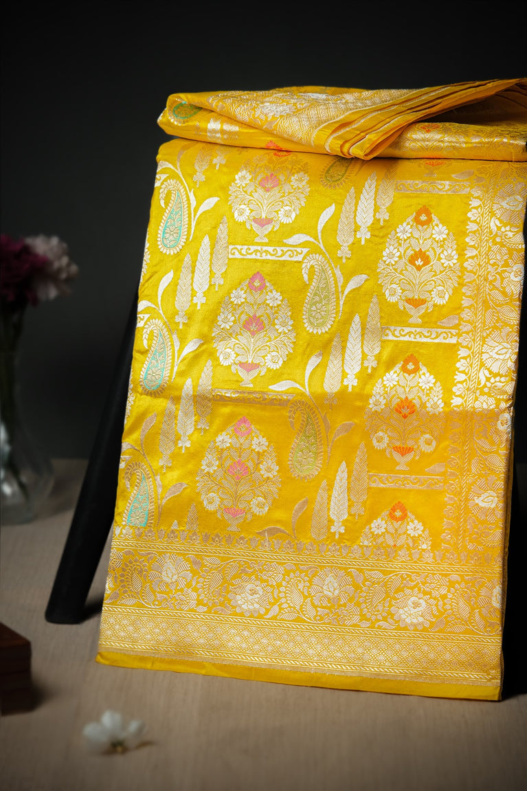 Mandir Yellow & Multi-Colour Banarasi Motifs Saree