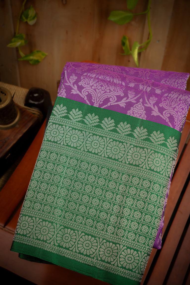 Mandir Violet & Bottle Green Coimbatore Jaal Saree