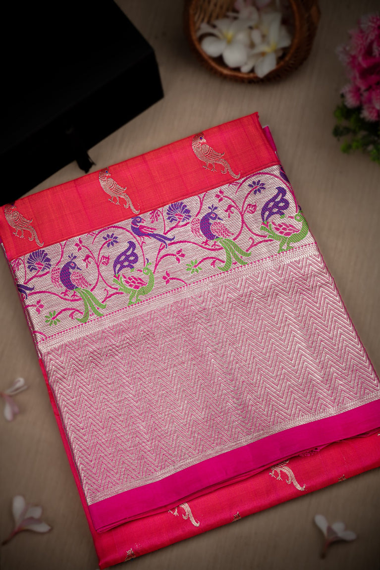 Mandir Tangy Orange and Pink & Pink Venkatagiri Motifs Saree
