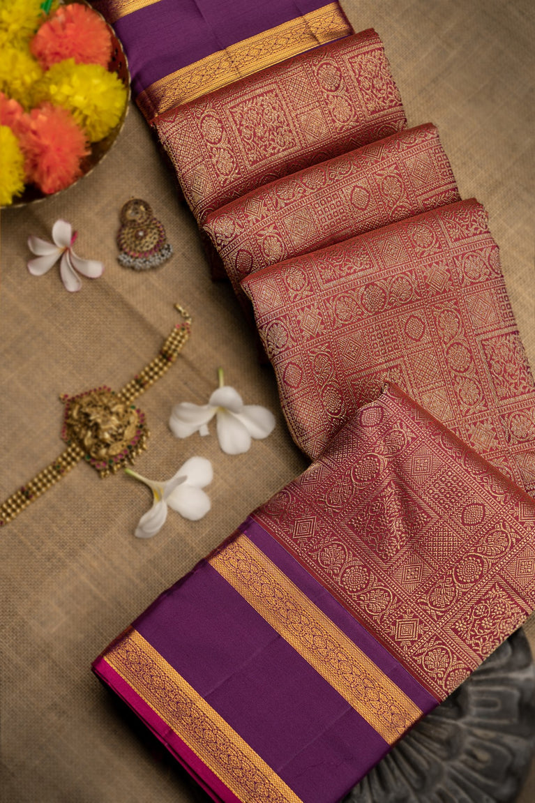 Mandir Light Brown & Lavender Kanchipuram Brocade Saree