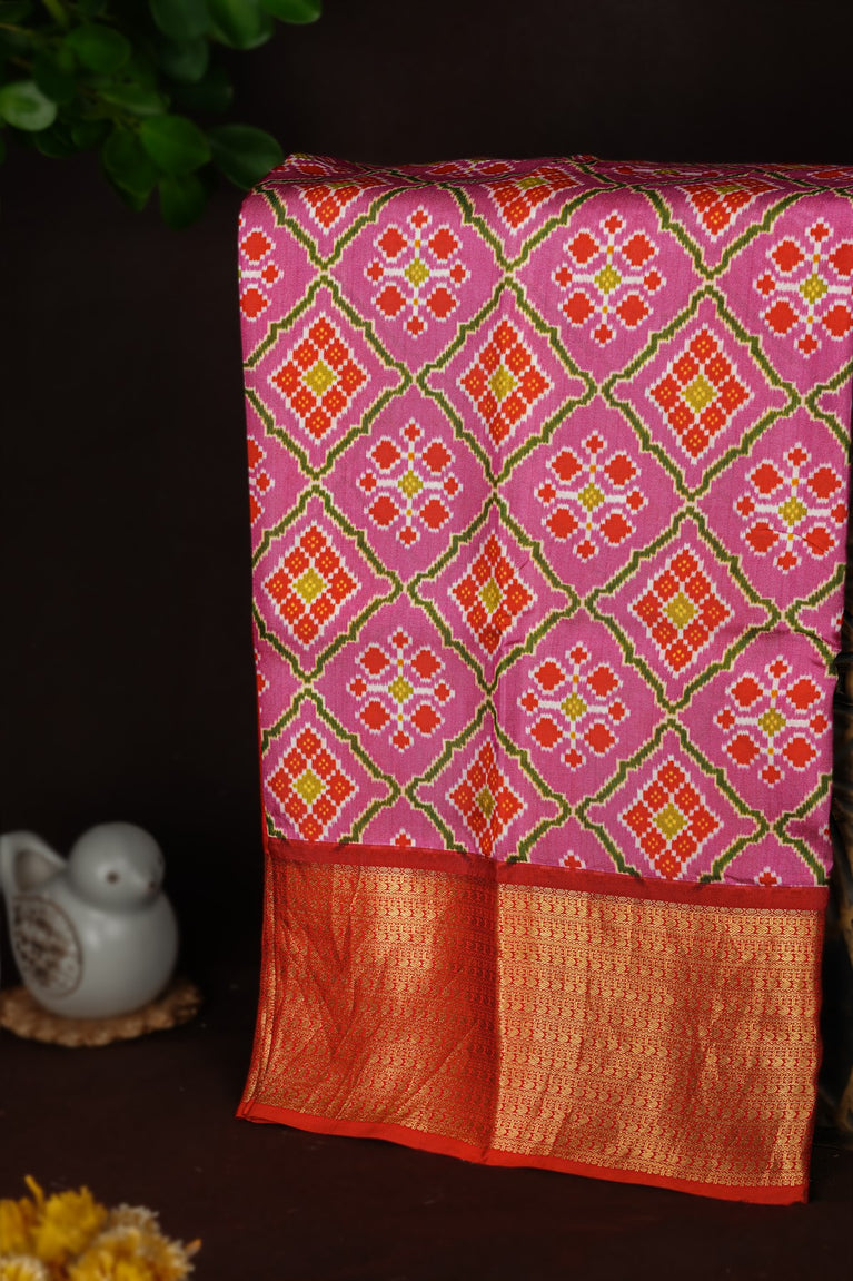Mandir Light Grey & Pink Kanchi Ikat Motifs Saree