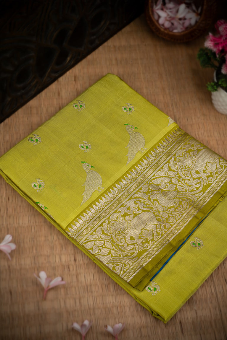 Mandir Lemon Yellow & Sea Green Uppada Buttis Saree