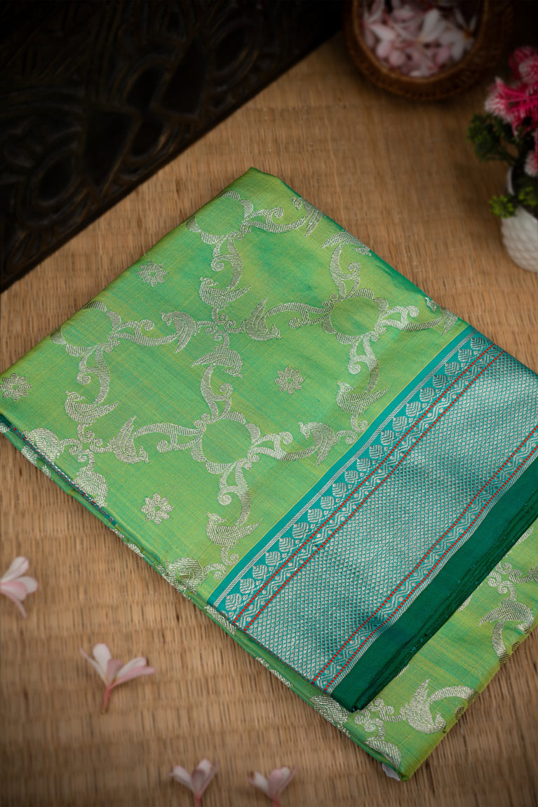 Mandir Light Green & Olive Green Uppada Buttis Saree