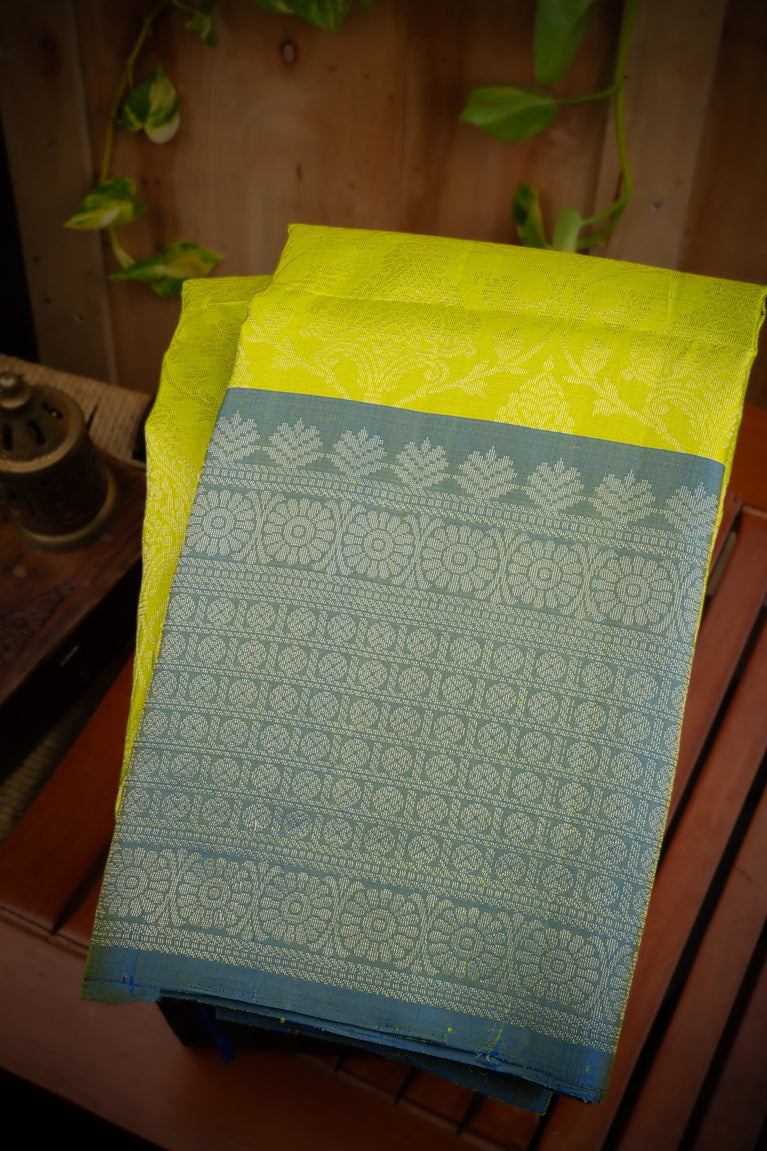 Mandir Lemon Yellow & Light Blue Coimbatore All Over Saree