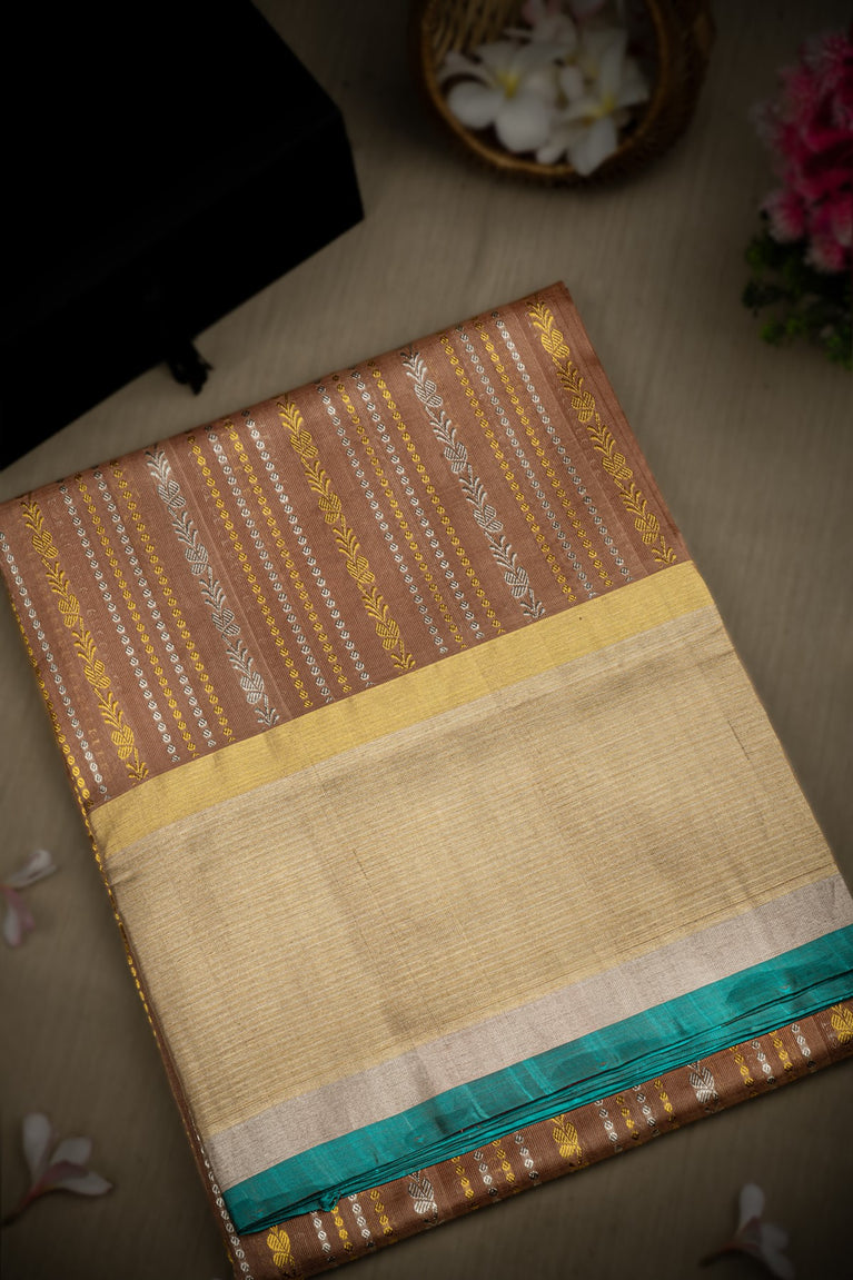 Mandir Light Brown & Sea Green Kuppadam Motifs Saree