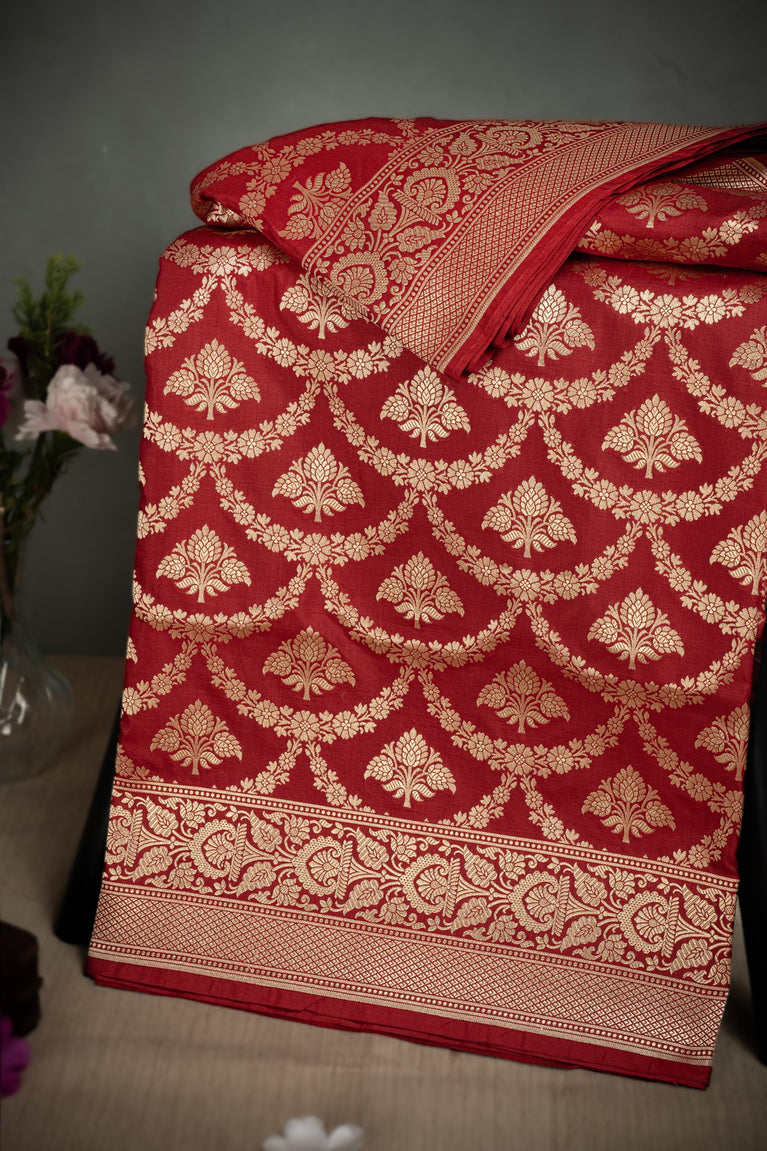 Mandir Maroon & Gold Banarasi Jaal Saree