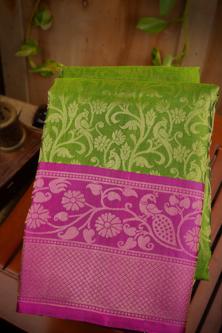 Mandir Mehendi Green & Dark Purple Coimbatore Jaal Saree