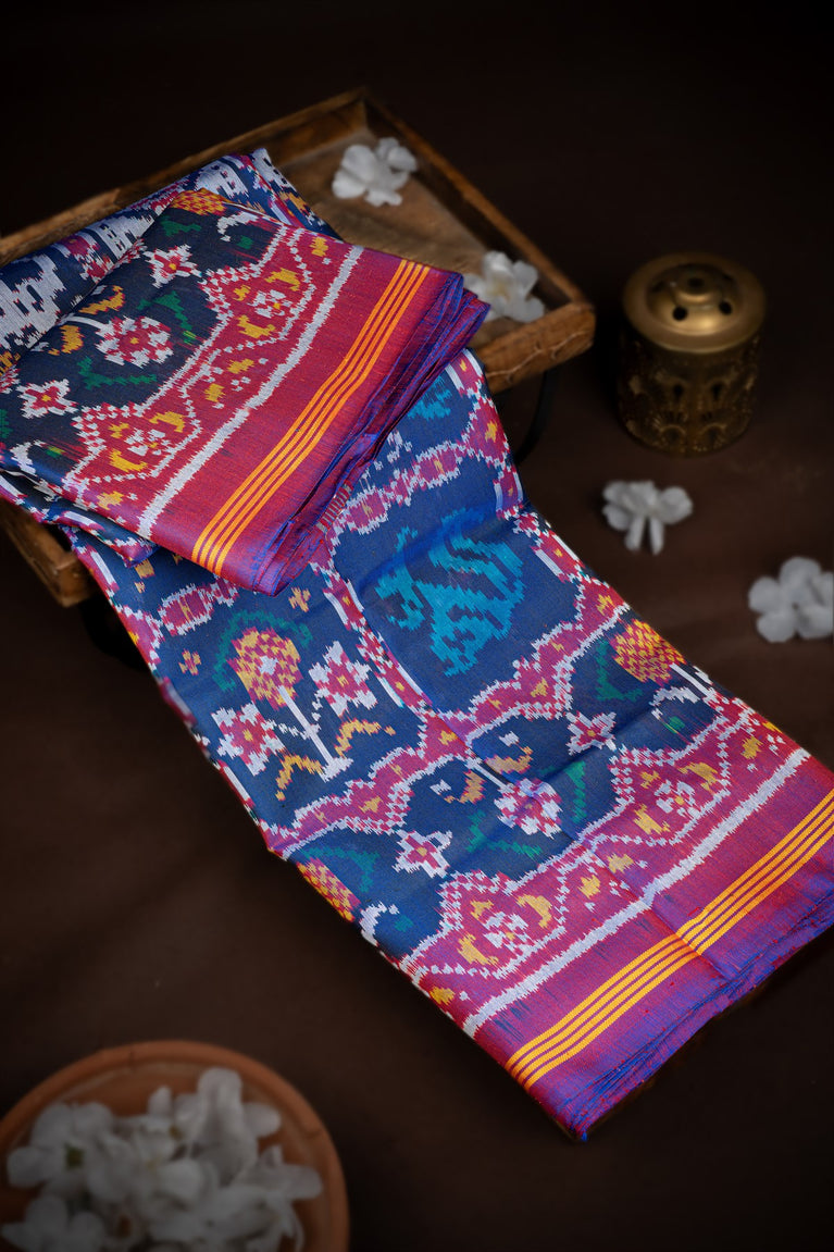 Mandir Multi-Colour & Purple Patan Patola Ikat Saree