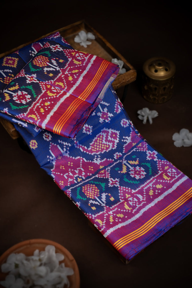 Mandir Multi-Colour & Purple Patan Patola Ikat Saree
