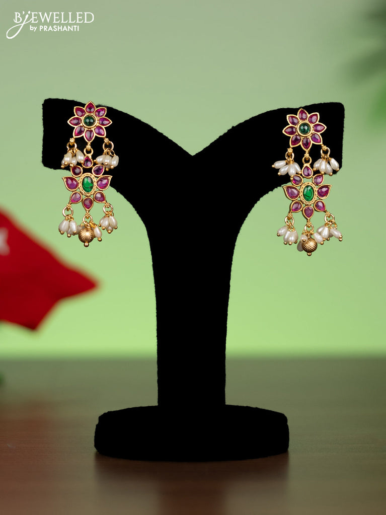 Antique attigai necklace floral design with kemp stones and pearl hangings without earring