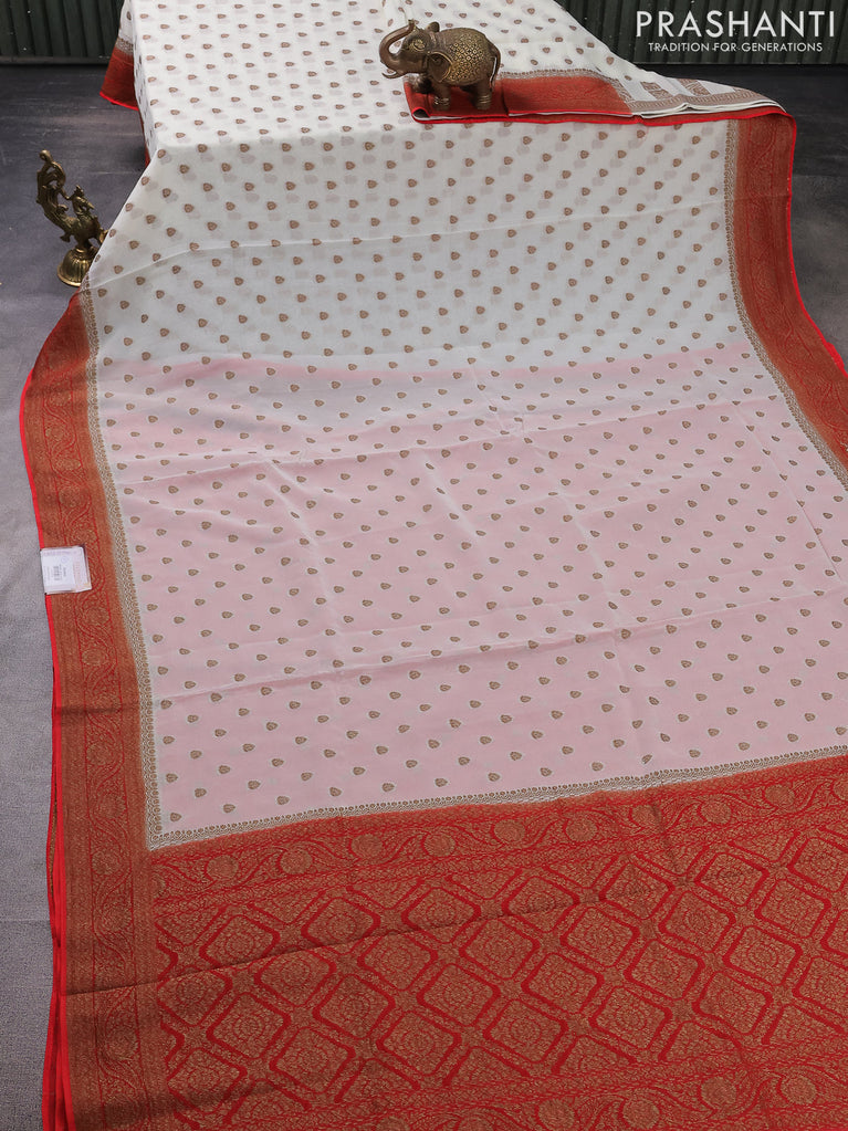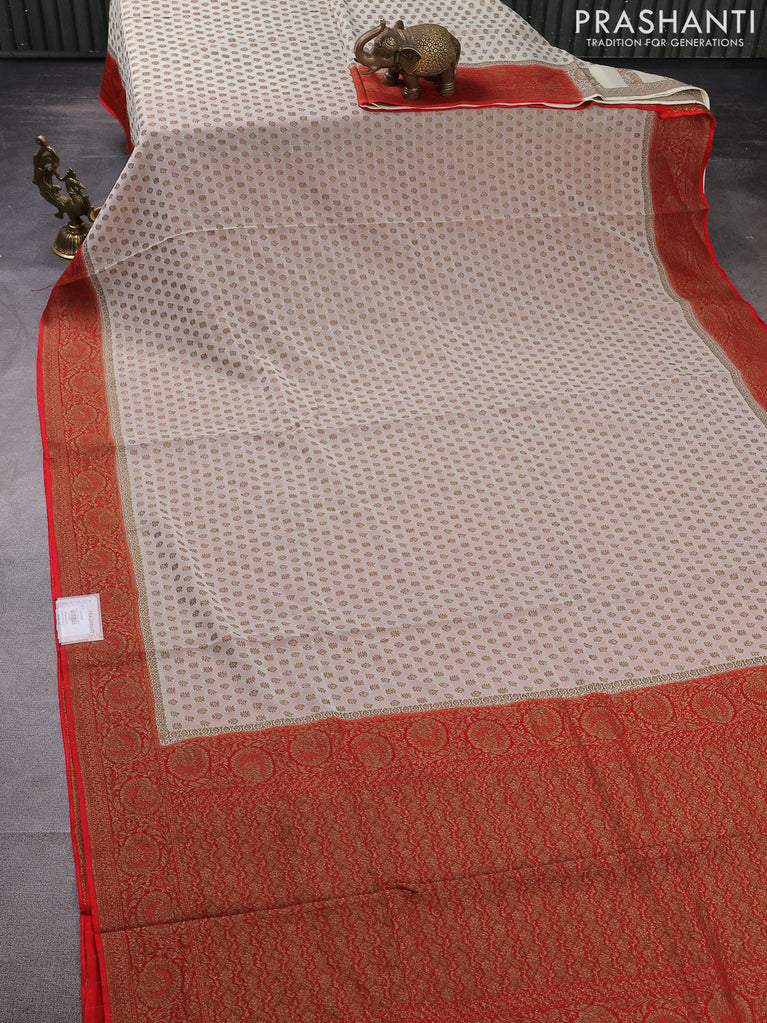 Banarasi semi georgette saree beige and red with allover thread & zari woven buttas and woven border