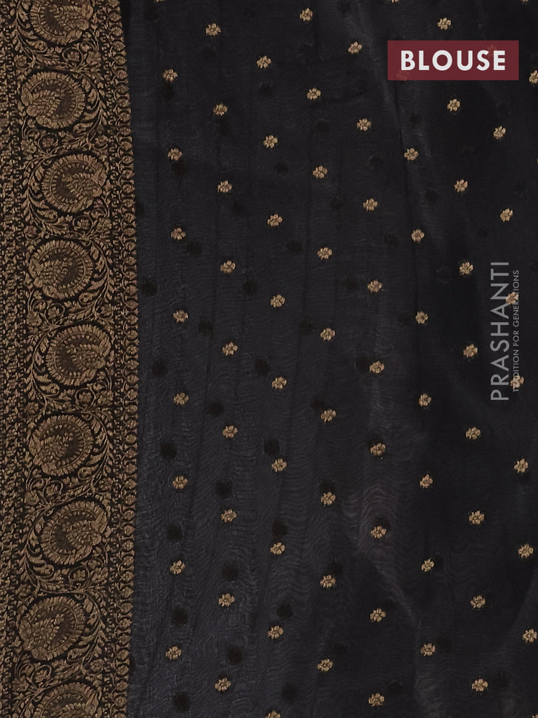 Banarasi semi georgette saree grey and black with allover thread & zari woven buttas and woven border