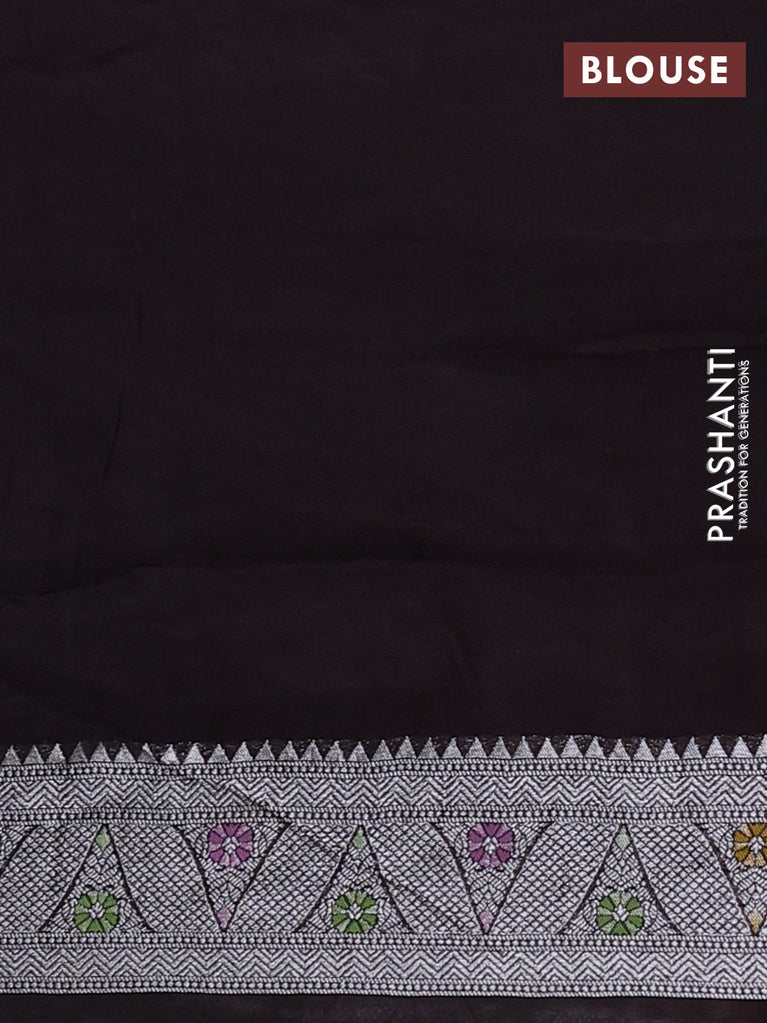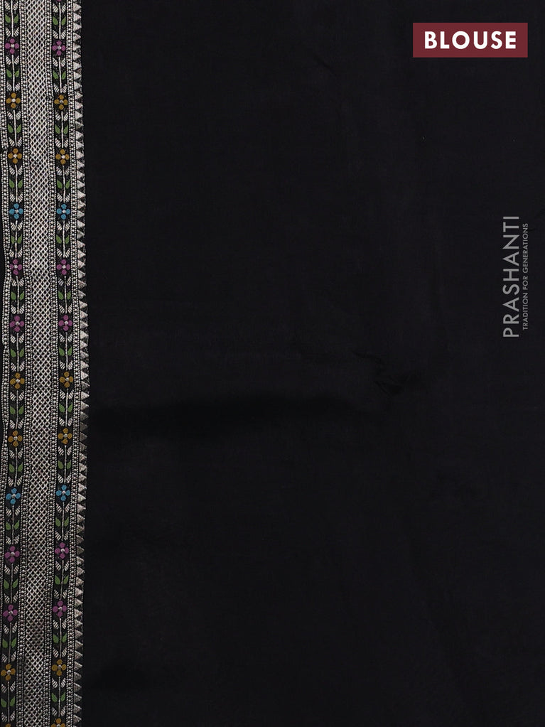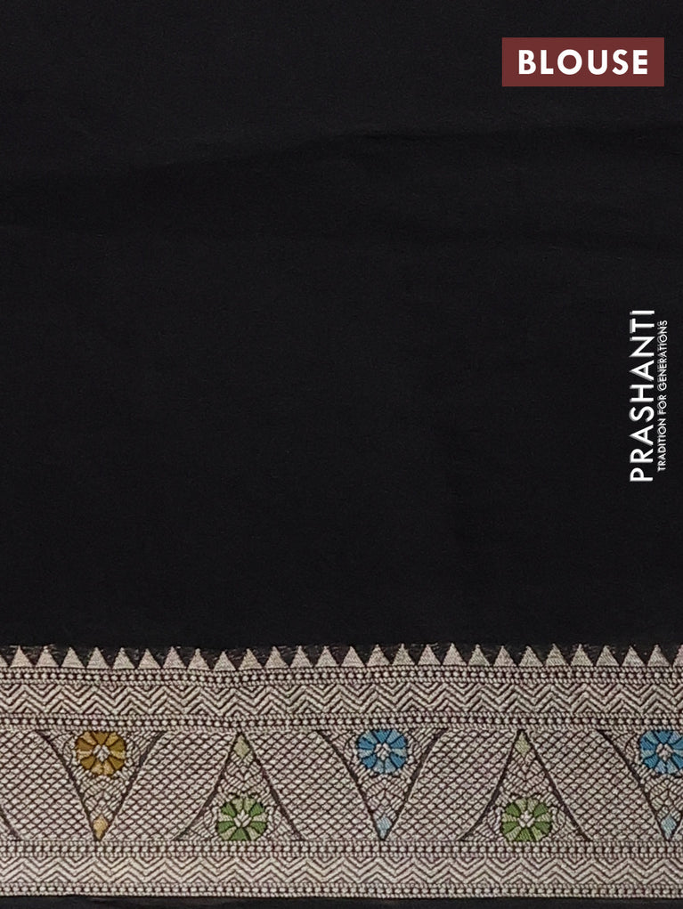 Banarasi semi raw silk saree black with allover silver zari woven brocade weaves and floral design paithani border