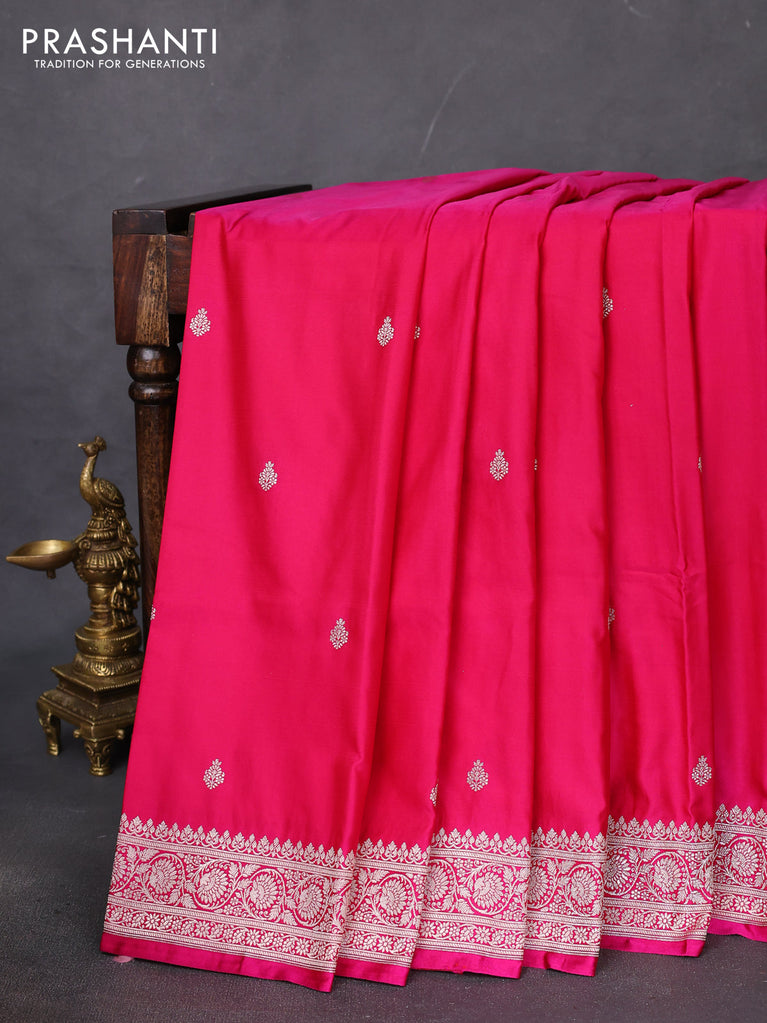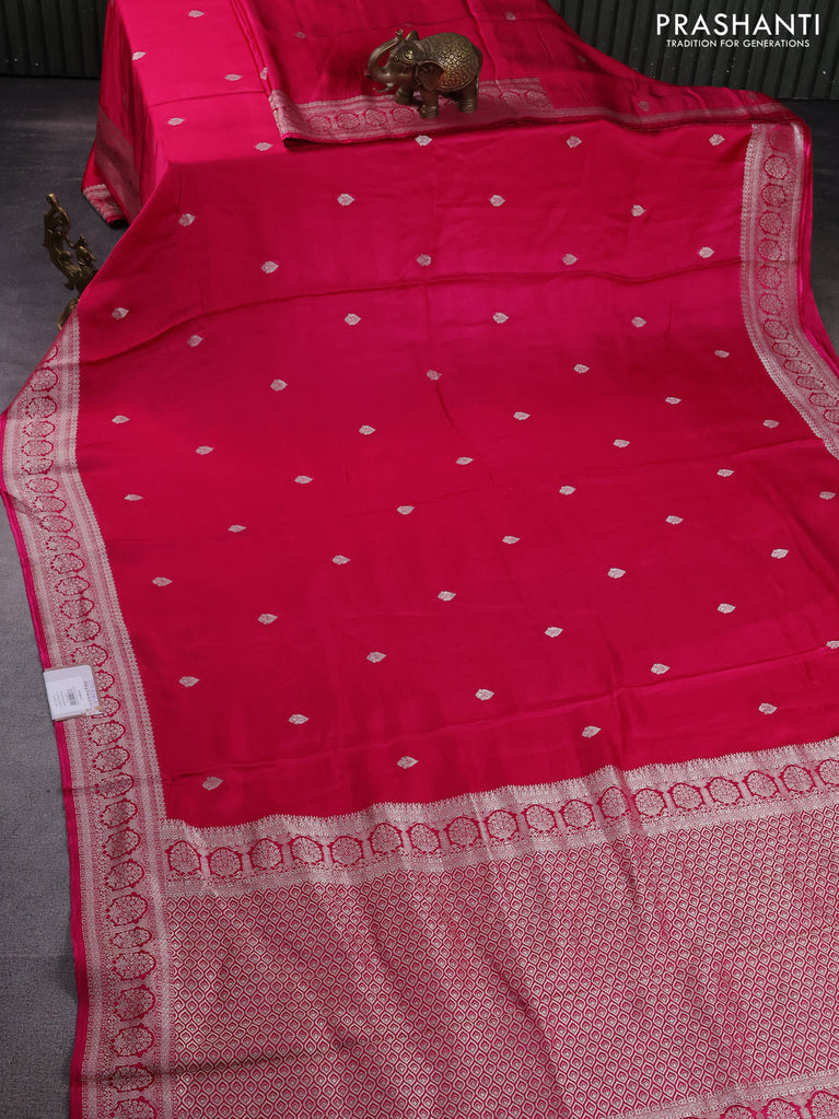 Banarasi semi mushru silk saree pink with zari woven buttas and zari woven border