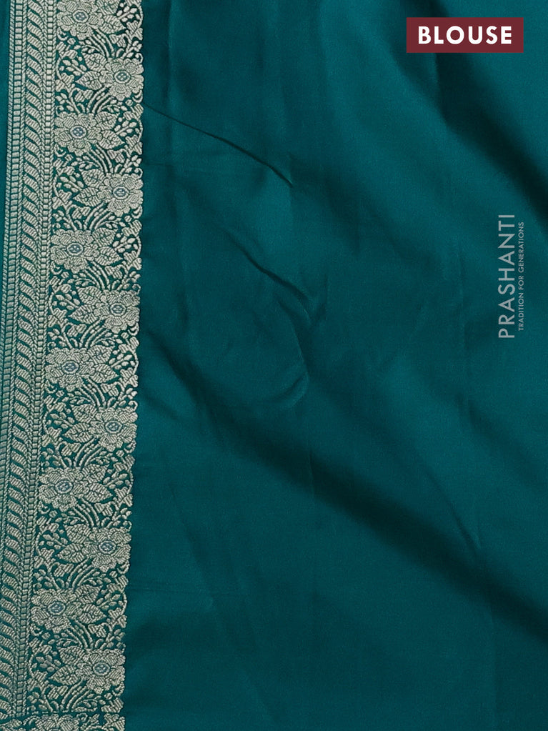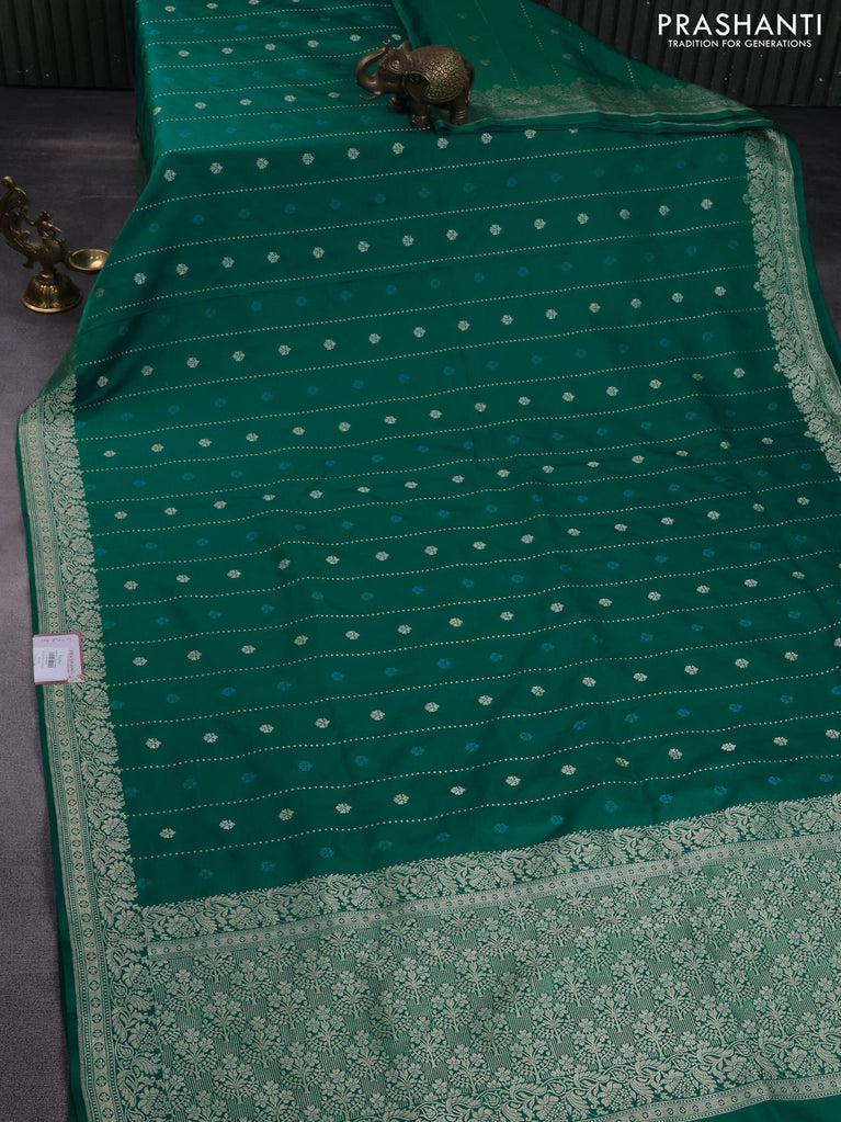 Banarasi semi mushru silk saree teal green with thread & zari woven buttas and zari woven border