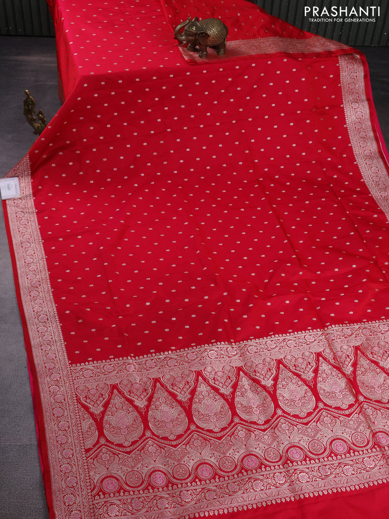 Banarasi semi mushru silk saree red with allover zari woven buttas and zari woven border